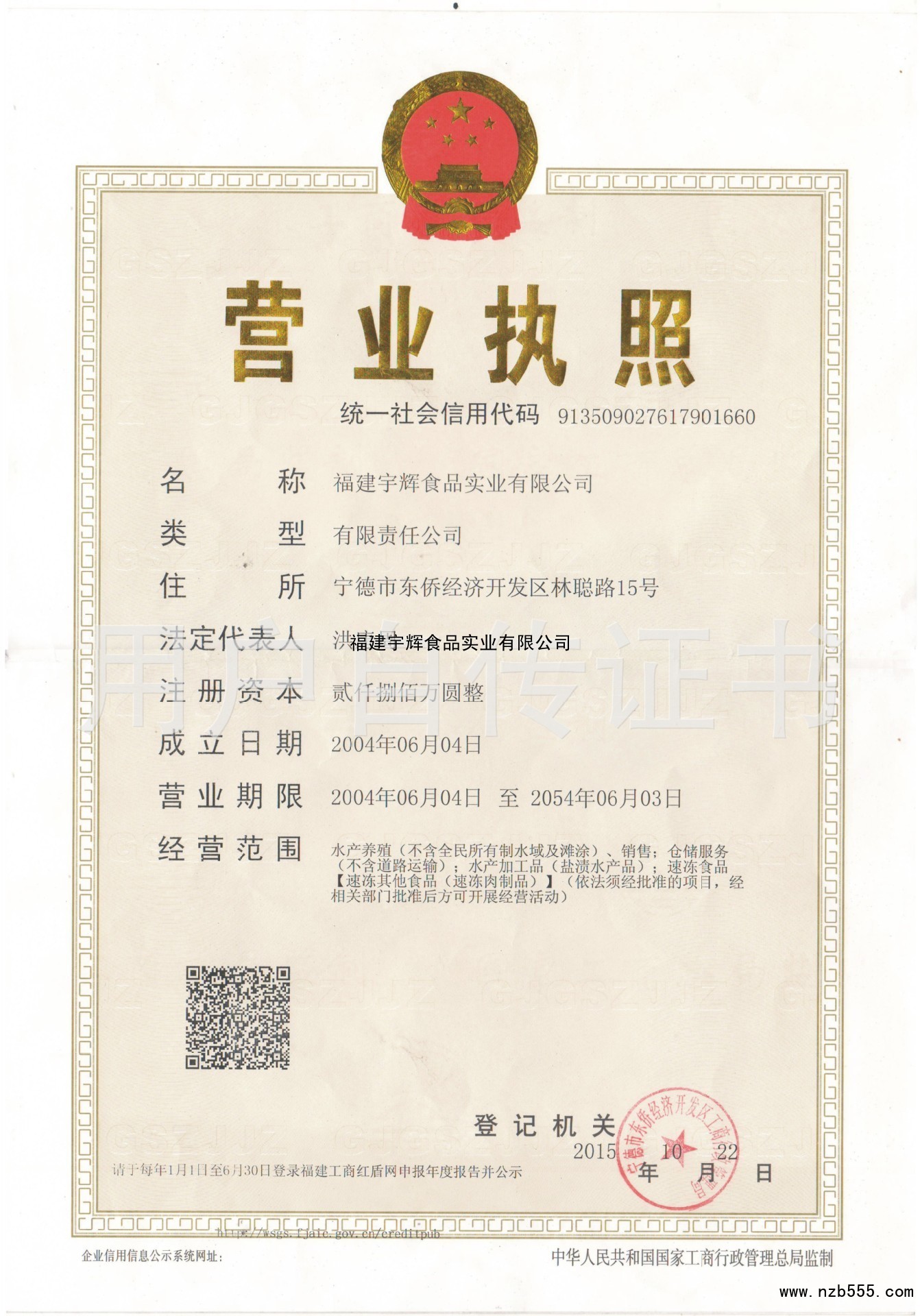 | 發(fā)證機(jī)構(gòu): | 寧德市東僑經(jīng)濟(jì)開發(fā)區(qū)工商行政管理局 | 發(fā)證時(shí)間 : | 2015-10-22 |