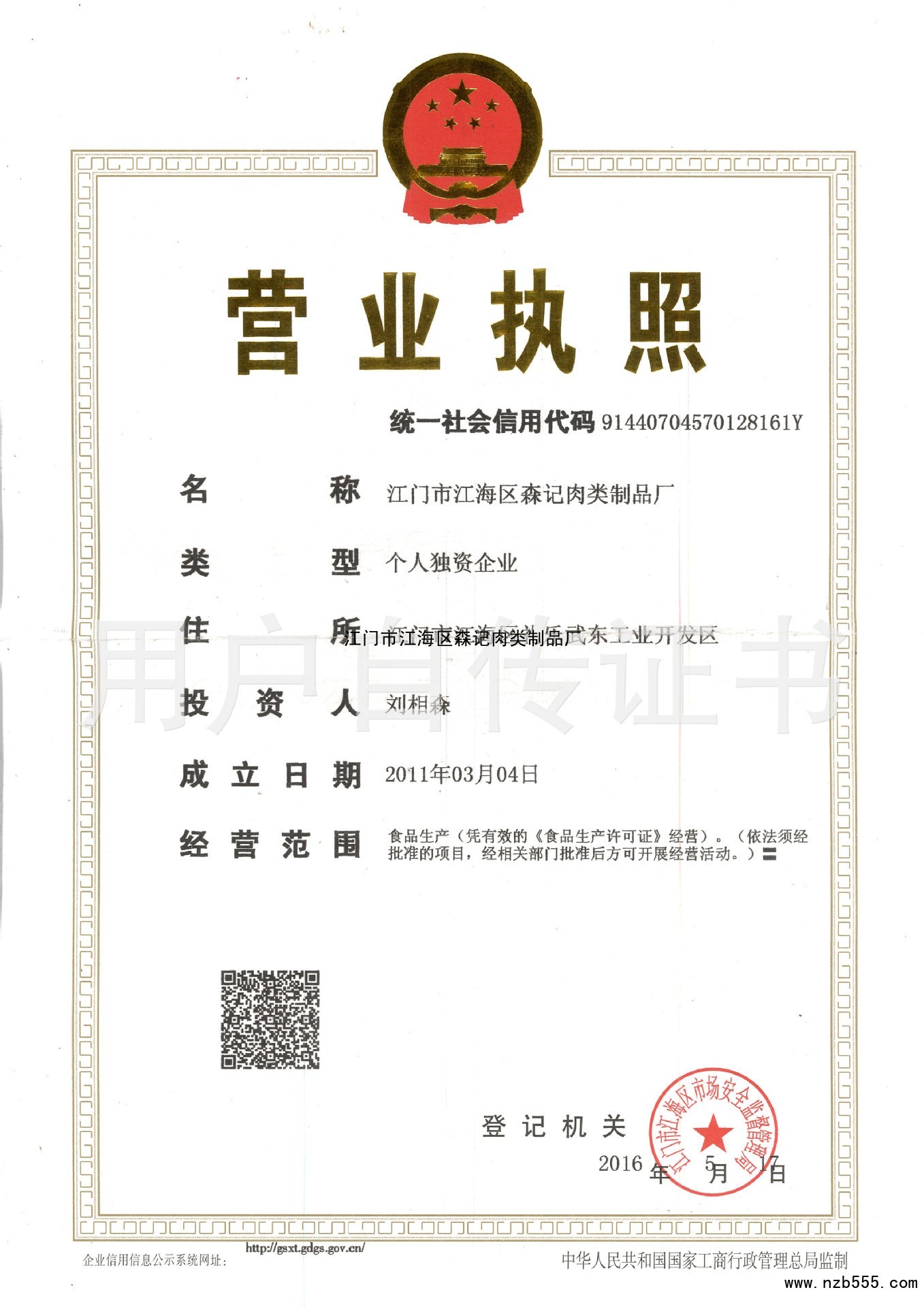 江門市江海區森記肉類制品廠