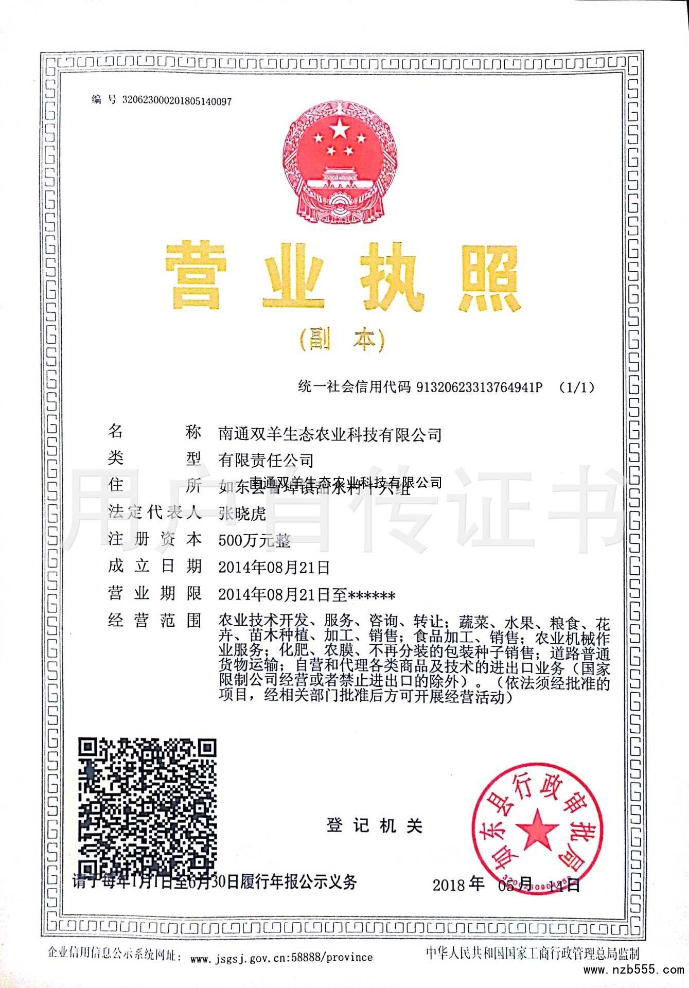 榮譽(yù)資質(zhì) 南通雙羊生態(tài)農(nóng)業(yè)科技有限公司