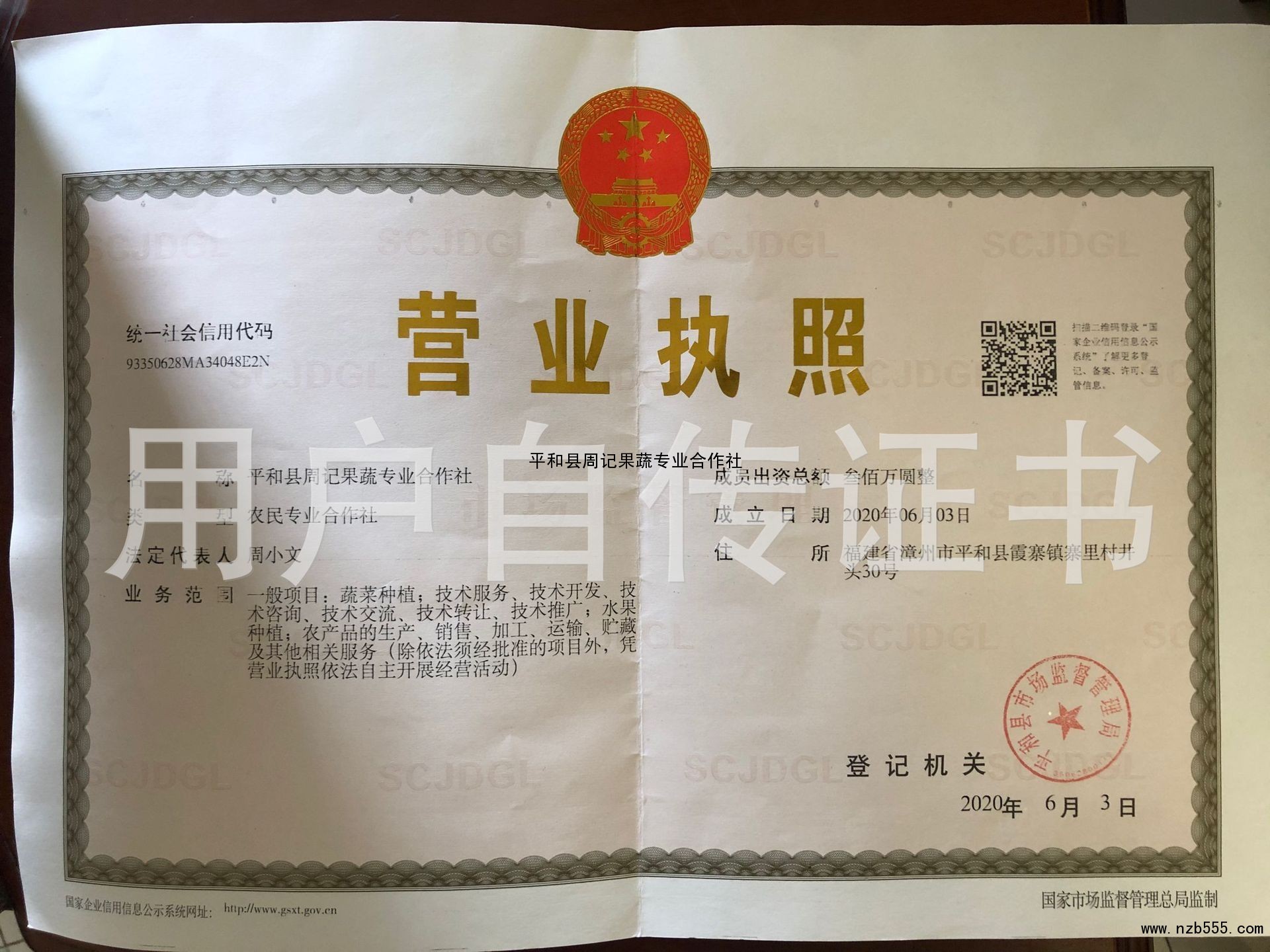 | 發(fā)證機(jī)構(gòu): | 平和縣市場(chǎng)監(jiān)督管理局 | 發(fā)證時(shí)間 : | 2020-06-03 |