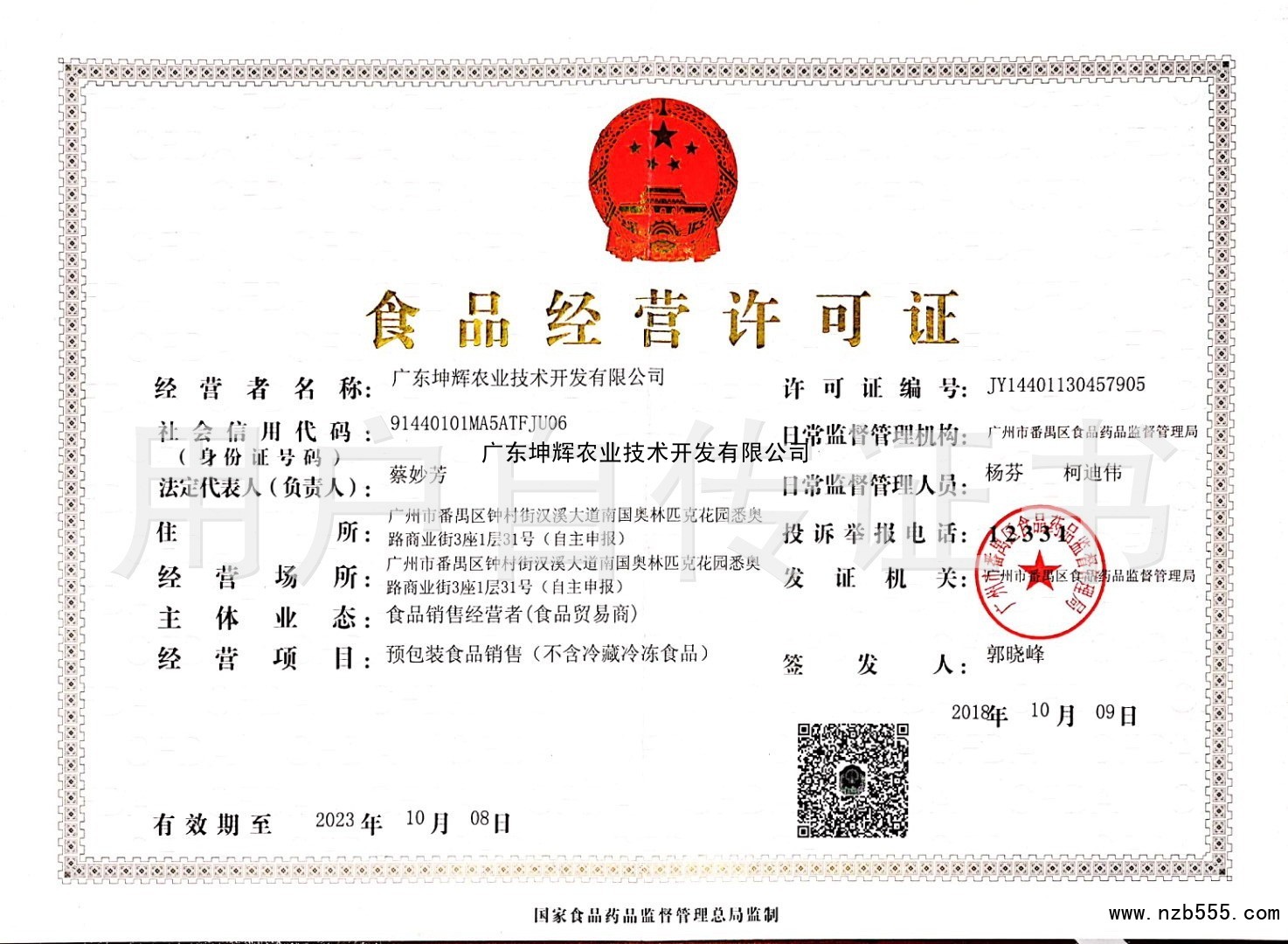 食品生產許可證(除乳制品、嬰幼兒配方乳粉、酒之外的生產許可證)