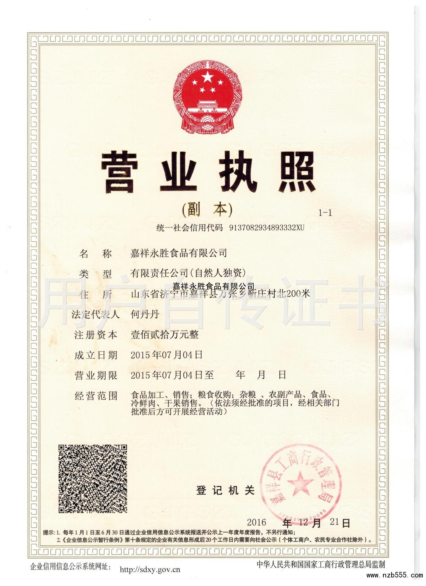 | 發(fā)證機(jī)構(gòu): | 嘉祥縣工商行政管理局 | 發(fā)證時(shí)間 : | 2016-12-21 |