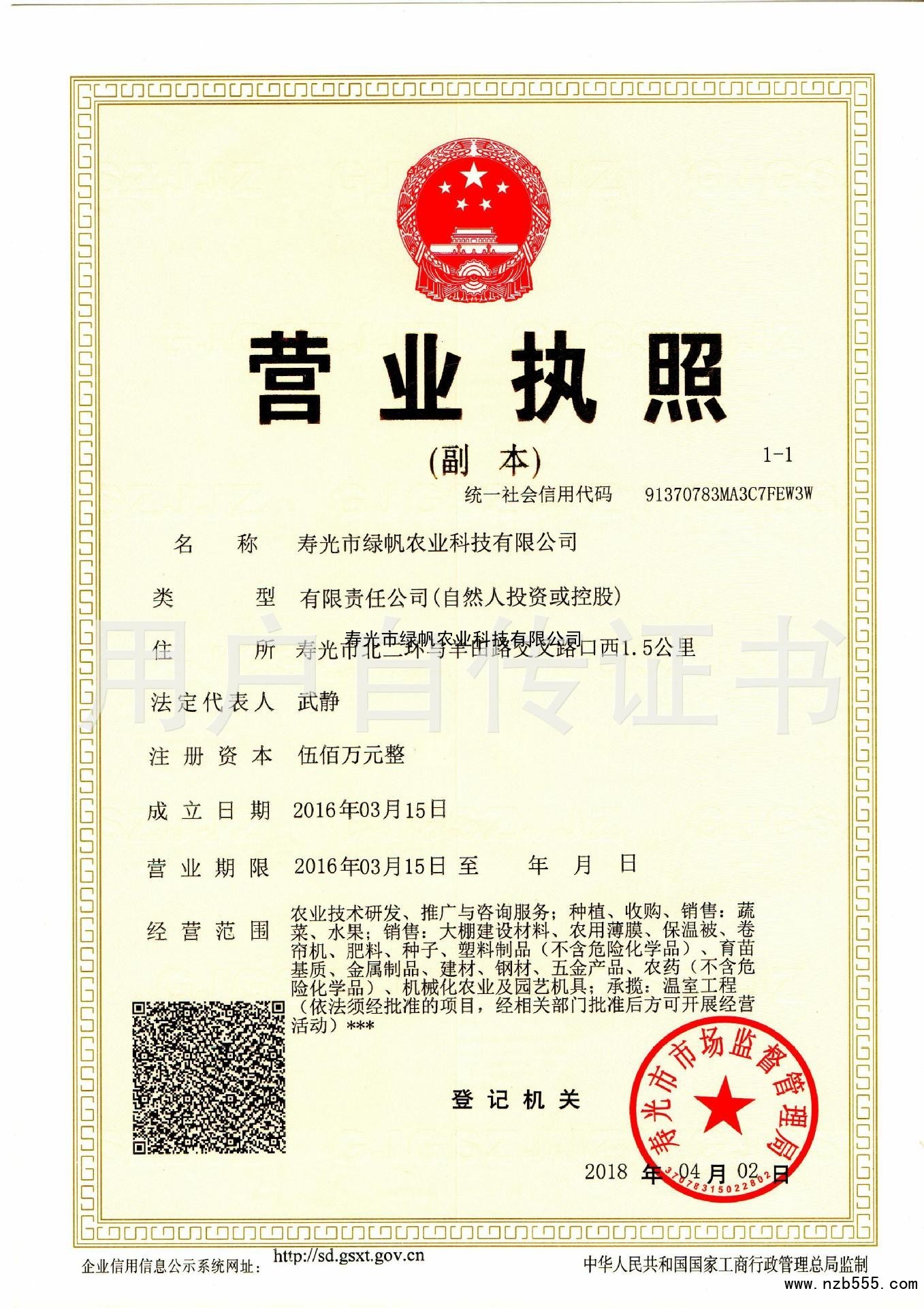 | 發(fā)證機(jī)構(gòu): | 壽光市市場(chǎng)監(jiān)督管理局 | 發(fā)證時(shí)間 : | 2018-04-02 |