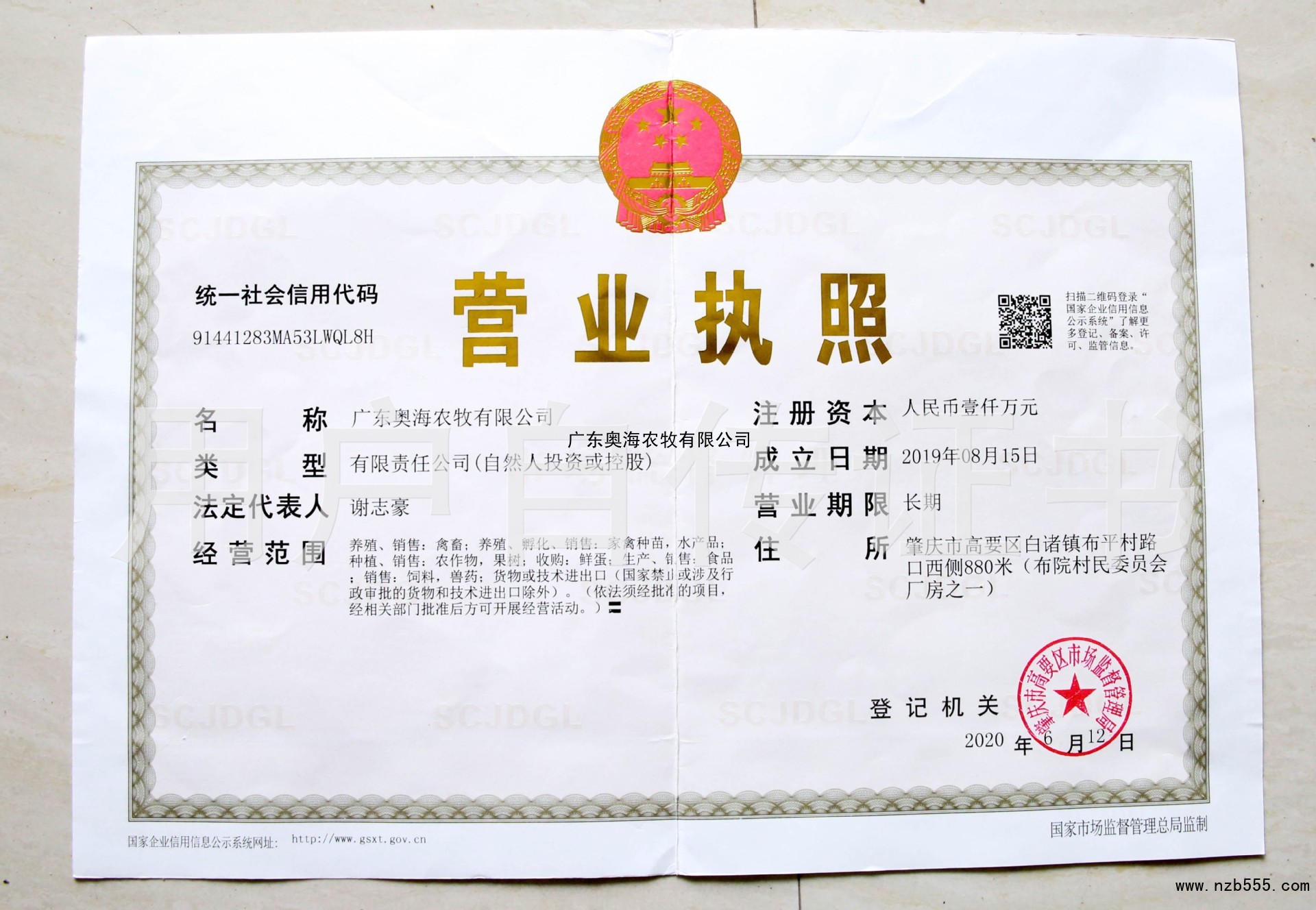 | 發(fā)證機(jī)構(gòu): | 肇慶市高要區(qū)市場(chǎng)監(jiān)督管理局 | 發(fā)證時(shí)間 : | 2020-06-12 |