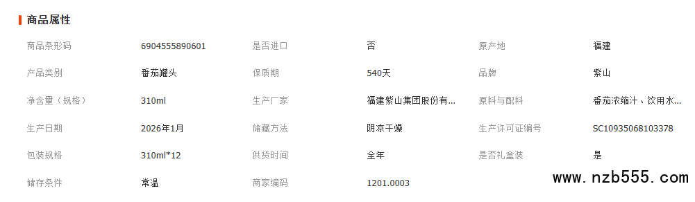 紫山番茄汁310ml*12罐整箱濃縮果蔬汁西紅柿汁飲料廈航飲品