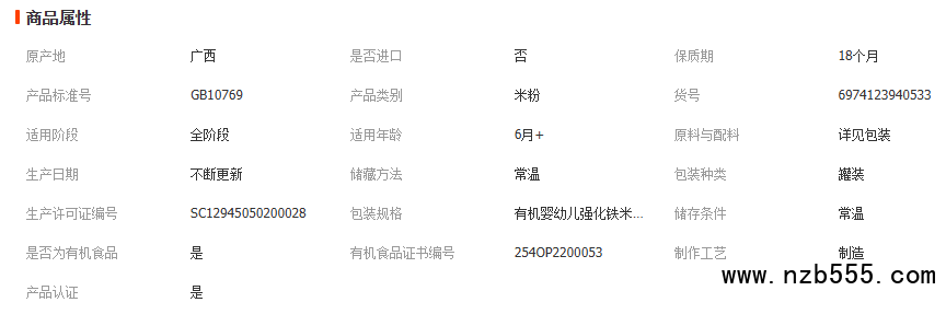 有機嬰幼兒強化鈣鐵鋅米粉225g寶寶營養水果肉蔬米粉
