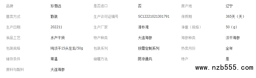 好品質大連淡干海參一件50g,分兩個規格:10頭左右/50g;12頭左右/50g