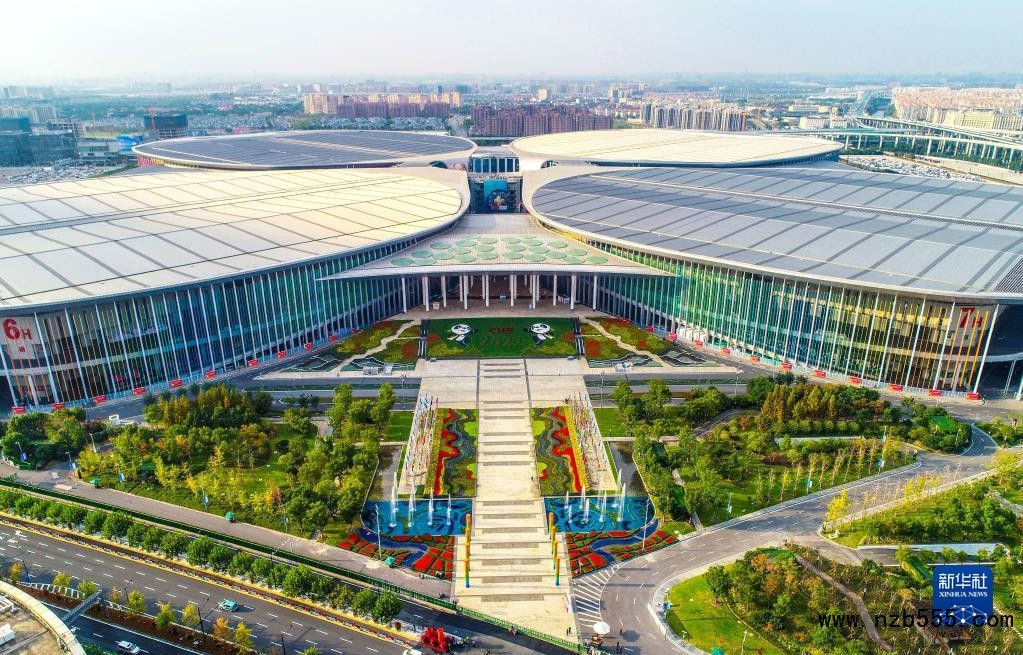 3日的上海,秋高氣爽,形似“四葉草”的國家會展中心(上海)裝點一新。