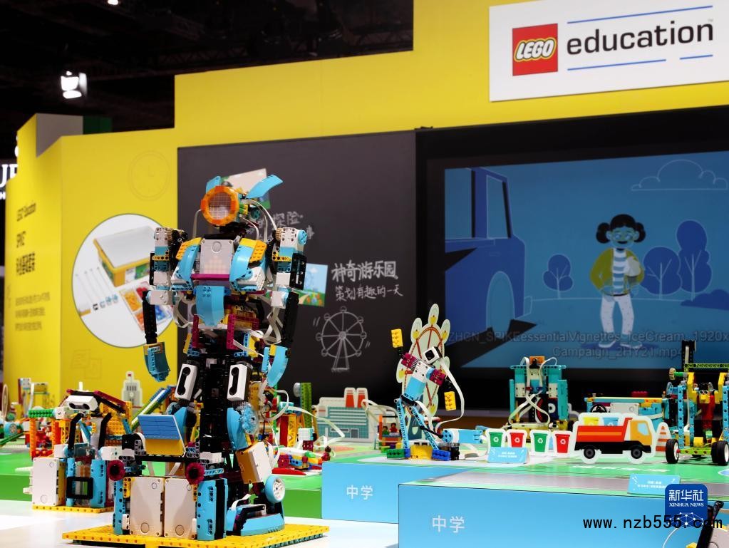 第四屆中國國際進口博覽會樂高展臺(2021年11月5日攝)。新華社記者 劉穎 攝