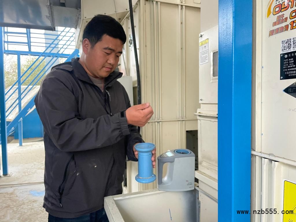 安徽省滁州市天長市種糧大戶平東林在烘干廠房檢測水稻水分。新華社發