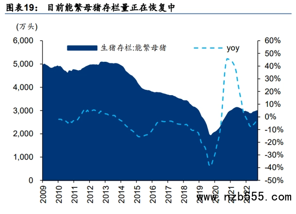 能繁母豬恢復趨勢已經確立:即從 22 年 5 月份開始,能繁母豬開始趨勢性恢復,但恢復速度 偏慢。1)22 年 5 月-22 年 9 月,能繁母豬恢復速度平均為 0.88%,而上輪周期產能恢復的 前 5 個月(2019 年 10 月-2020 年 2 月),能繁母豬恢復速度平均為 1.94%。2)目前二元母 豬價格并不算高,仔豬價格也并未超過前兩次周期高點。我們認為,這主要有兩個原因,一 是規模企業種豬大量進口:由于整個行業對生豬生產過于樂觀,2020-2021 年規模企業進口 了大量種豬,而這批種豬會在 2021-2023 年釋放優質二元母豬,因此二元母豬供應相對充足。 二是養殖戶補欄積極性差。
