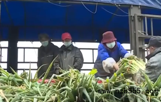 記者在留固鎮西尖莊村采訪時看到,不少農民的大蔥正在被打包裝車。