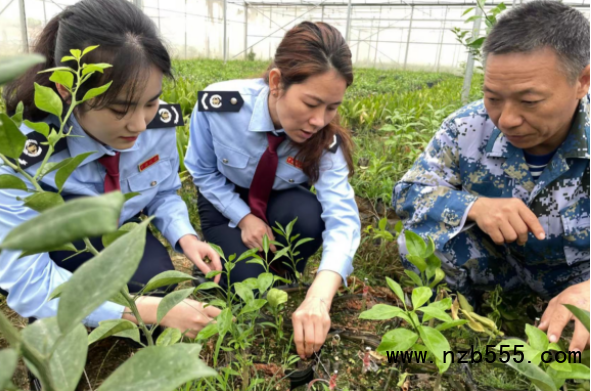 國家稅務總局瓊中黎族苗族自治縣稅務局春風行動青年志愿隊到瓊中綠橙種植基地進行政策輔導(央廣網發 王露 攝)