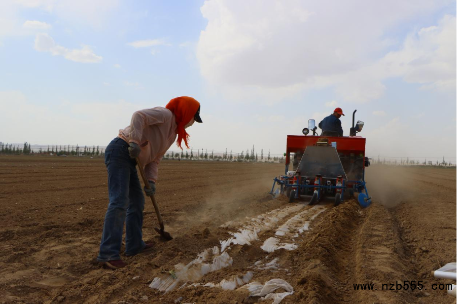 家住紅柳溝鎮紅柳溝村的村民趙廷偉一家正在進行滲水地膜谷子播種。農機在地里來回穿梭,穴播、鋪膜、播種一次完成,省工省時,條條“玉帶”鋪出了趙廷偉今年增收的新希望。