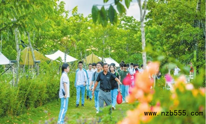 同學們在生態(tài)農(nóng)業(yè)科研園看濕地同泛著金黃的稻田鑲嵌交織,游覽長欽湖、八仙泉、美面溪等風光秀美的區(qū)域,了解砂土栽培技術(shù),體驗戶外燒烤,在星空下齊聲歡唱,享受愜意時光。