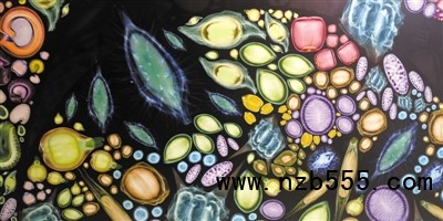 研究人員用X光對(duì)種子進(jìn)行質(zhì)量檢測(cè)產(chǎn)生圖像,并通過拼接著色形成的“種子幻境”。