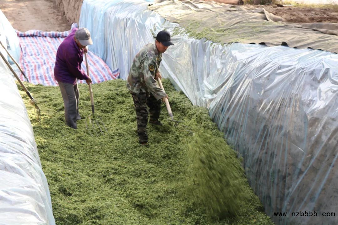 在庫倫鎮下扣河子村村民王世勇家青貯玉米地里,大型收割機開足馬力來回穿梭,田地間一派繁忙的收獲景象。過去王世勇家以種植玉米為主,2017年開始他家發展養殖產業。