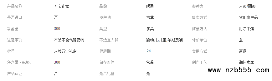 長白山特產人參五寶禮